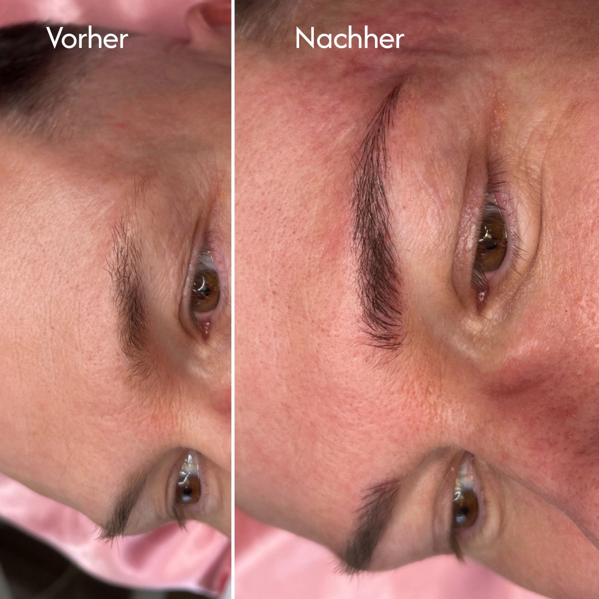 Es können minimale Schwellungen oder leichte Rötungen auftreten. Diese klingen in der Regel innerhalb weniger Stunden ab und können bei Bedarf vorsichtig mit Make-up um die Augenbraue herum kaschiert werden.